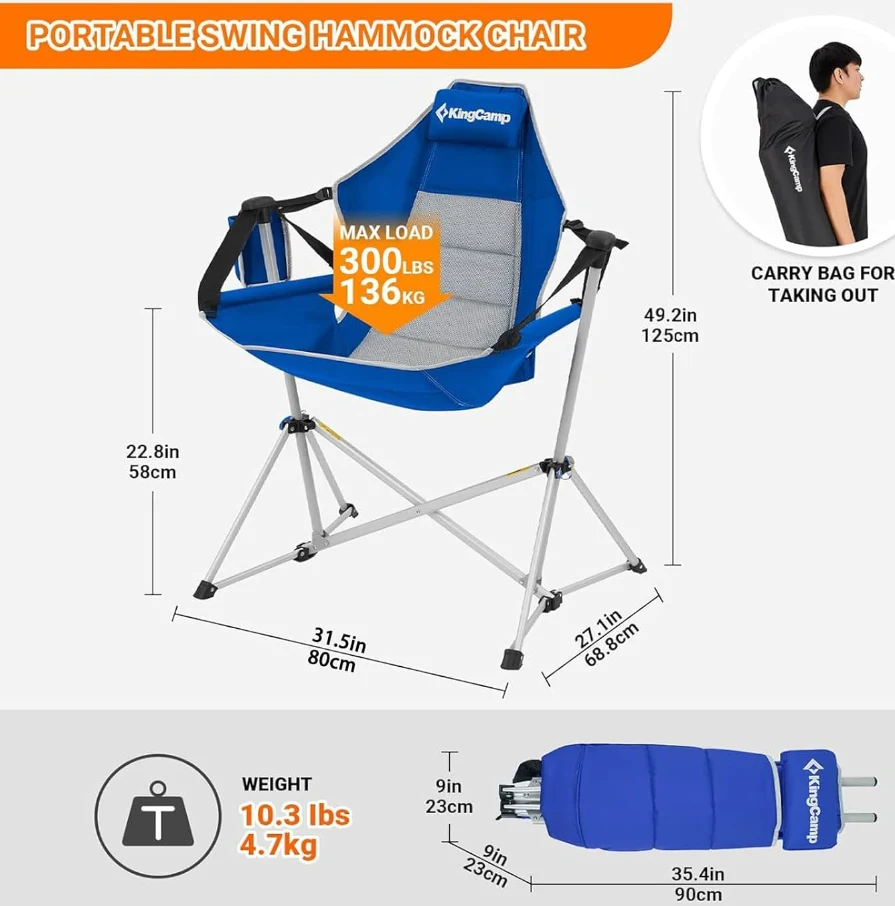 調整可能なポータブルキャンプチェアでは、自由に座ったりリクライニングできます。ストラップを調整すると、完璧なバックアングルを見つけることができます。スイングキャンプの椅子は、長いロープや木なしで野生で揺れることができます。