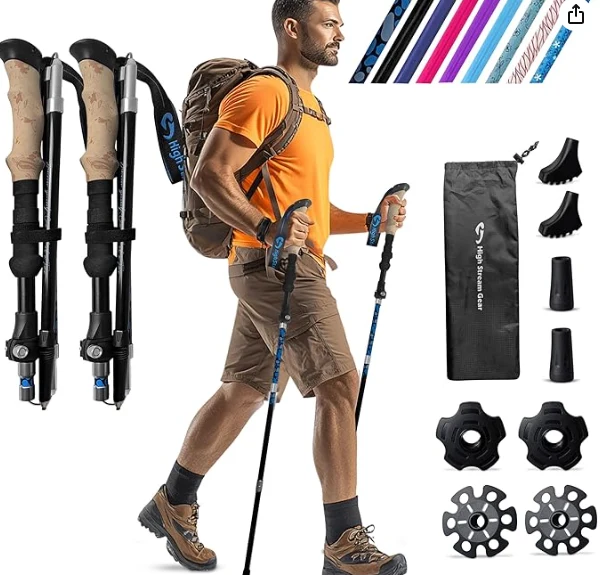 ハイキエのハイキングポールは37cm(14.5インチ)に崩壊し、それぞれ10オンスしか体重がありません。