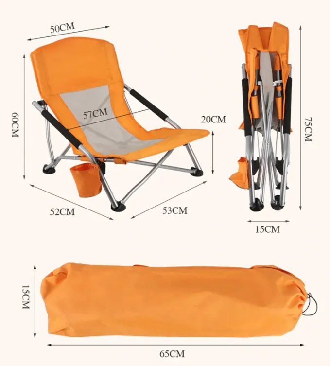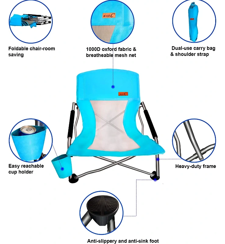 折りたたみ式ビーチセット、大人用の低いビーチチェアカップホルダーとキャリーバッグを備えたポータブルサンドチェアを折りたたんだ。金属製の腕に腕のクッションがあるので、腕を快適に休めることができます。