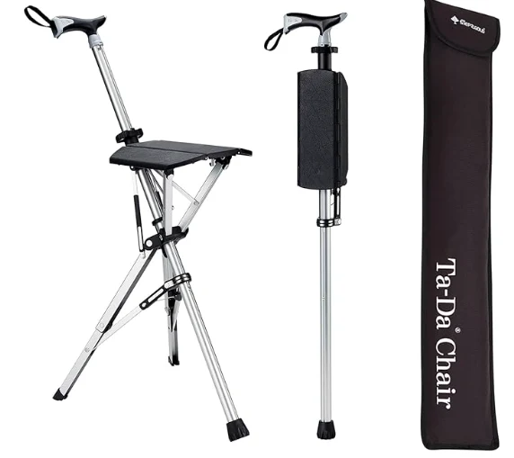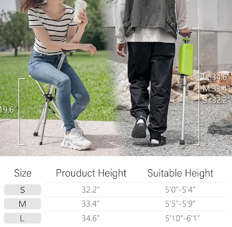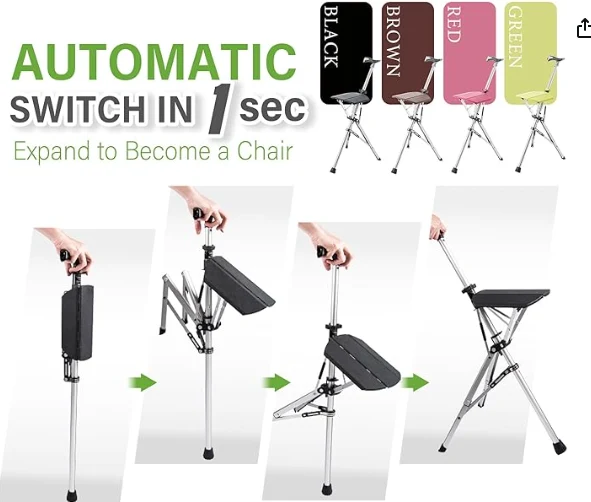 老人アルペンストックトレッキングケイン、休憩、サポートのためのハイキングスティック。このデザインは、ハイキングスティックをスナップで椅子に変換することを即座に変換し、すぐに疲れた足や膝のために休息を提供します。